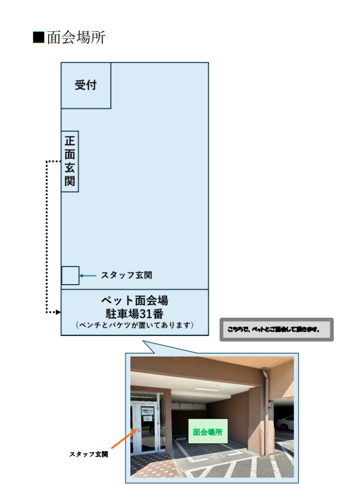 下記、ペット面会ルールをご確認ください。なお、事前予約制となっておりますことご了承ください。